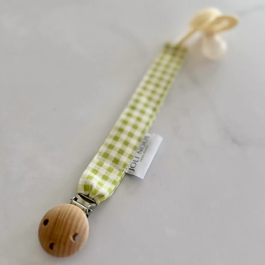 Gardez la tétine ou le doudou propre et à portée de main grâce à l’attache-lolette JOLI NOUS. Élégante, légère et sûre, elle combine un attache-clip en bois certifié européen et un adaptateur en silicone sans BPA, le tout cousu sur un tissu OEKO‑TEX fabriqué au Portugal.