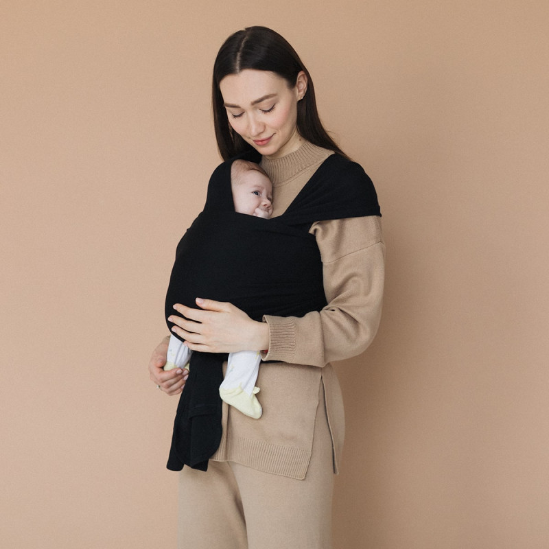 Le modal est une matière douce, fluide, naturellement respirante et encore plus souple que le coton. Il confère à l’écharpe une grande légèreté, tout en offrant un excellent soutien pour les petits gabarits.