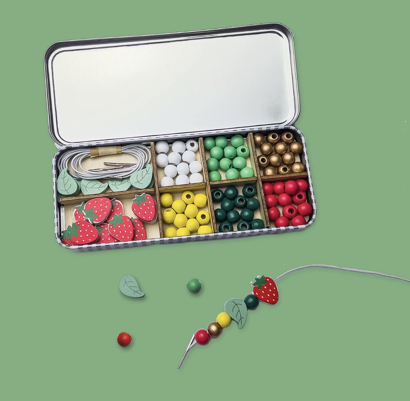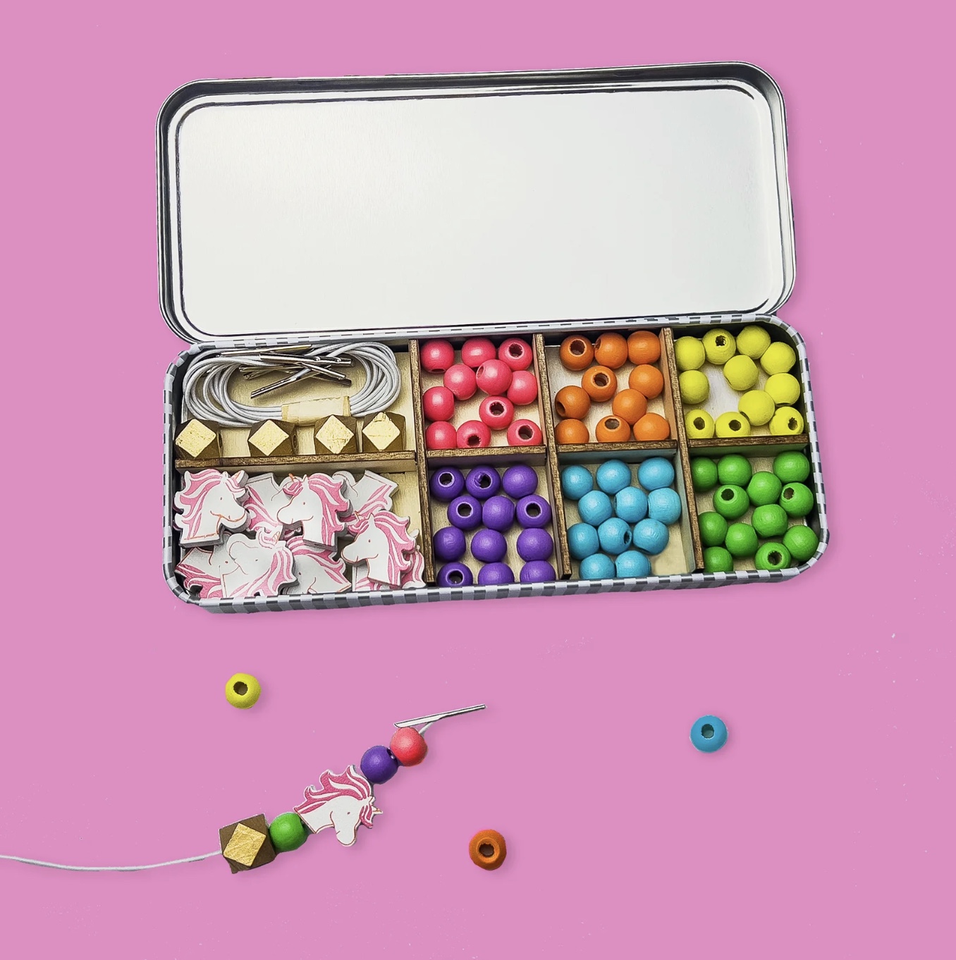 🎁 Bonus : la boîte métal réutilisable dans laquelle est livré le kit peut servir à ranger les bracelets, des petits trésors ou du matériel créatif — un détail pratique et durable.