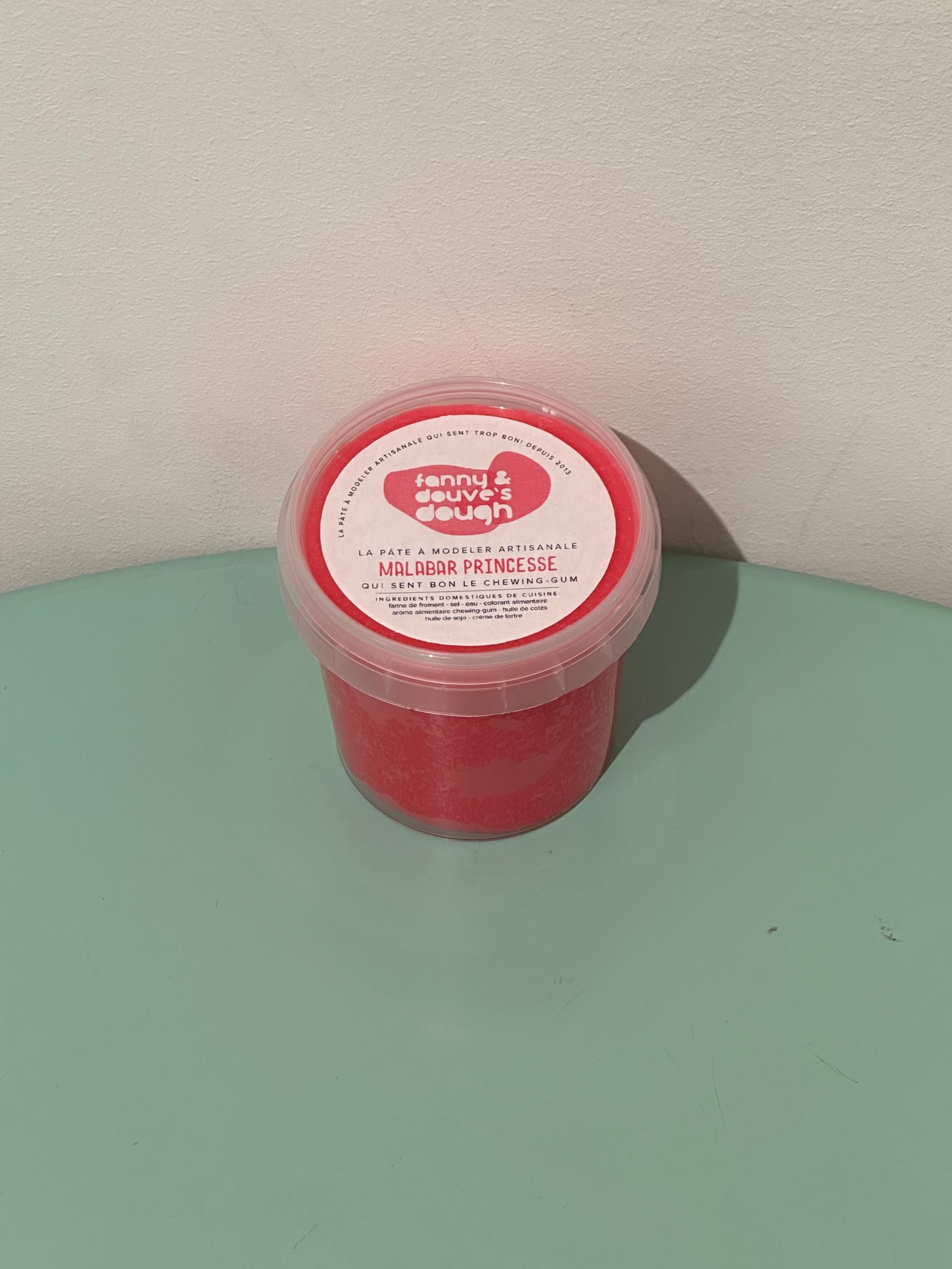 La pâte à modeler Fanny’n Douve’s Dough est fabriquée à la main à Fribourg, en Suisse 🇨🇭. Elle est composée d’ingrédients alimentaires comestibles : eau, farine, sel, tartrate acide de potassium, huile végétale, colorants alimentaires et arômes naturels ou de substitution. Cela garantit une pâte douce, malléable et sûre, même pour les petites mains.