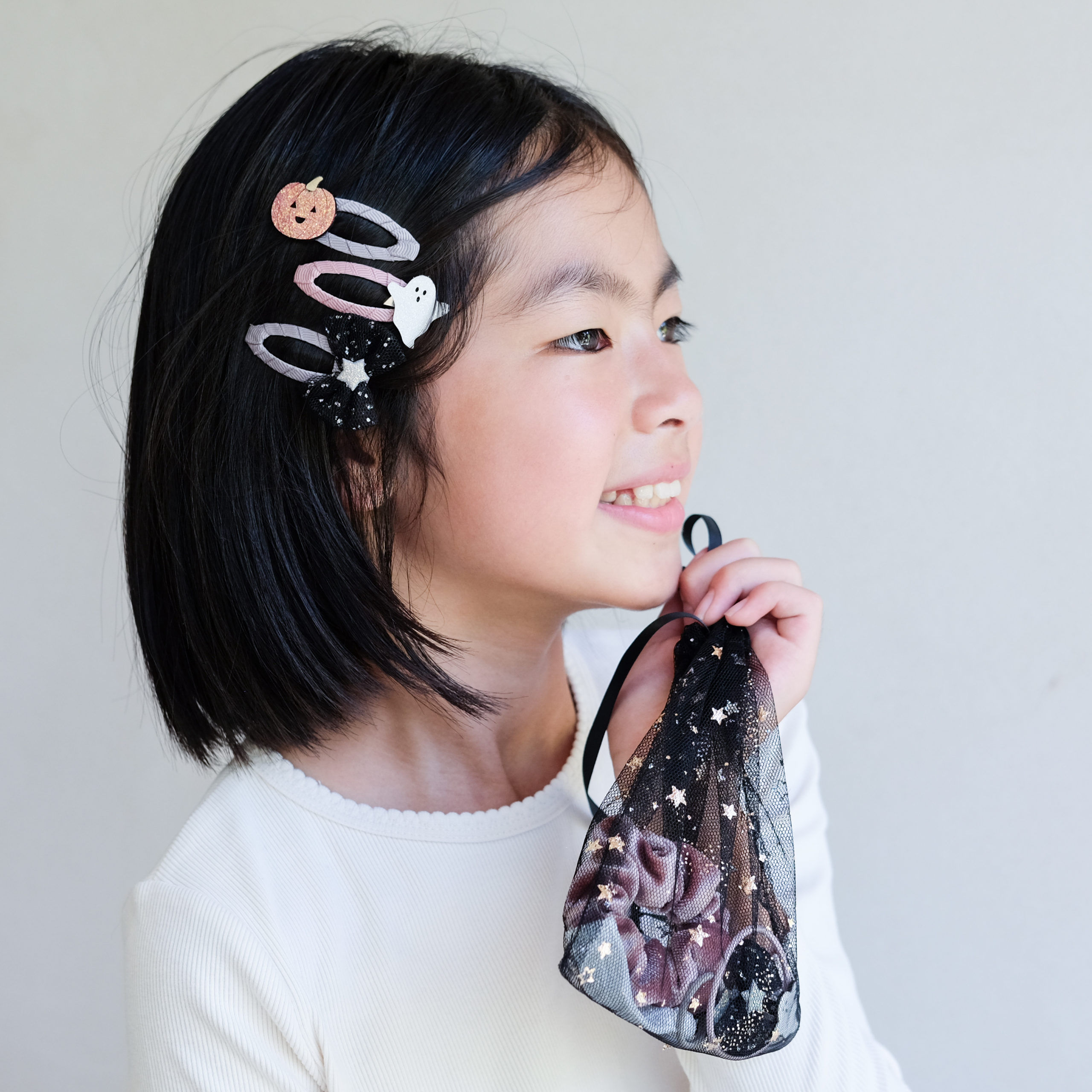 🕸️ Les Halloween Pouches de Mimi & Lula transforment les préparatifs d’Halloween en une fête de style et de magie ! Ce set de pochettes colorées et brillantes offre à chaque enfant un petit univers à emporter : des matières pailletées, des textures douces, et des motifs enchanteurs (chat, citrouille, lune, étoile…).